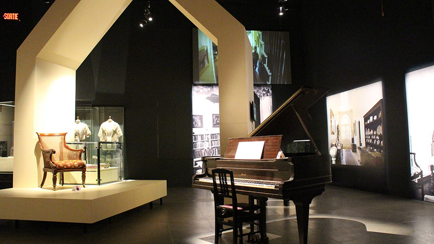 Design d'exposition : graphisme, mise en espace du mobilier, des audiovidéos et des artefacts, design du mobilier, suivi d'impression, de fabrication et d'installation