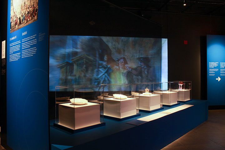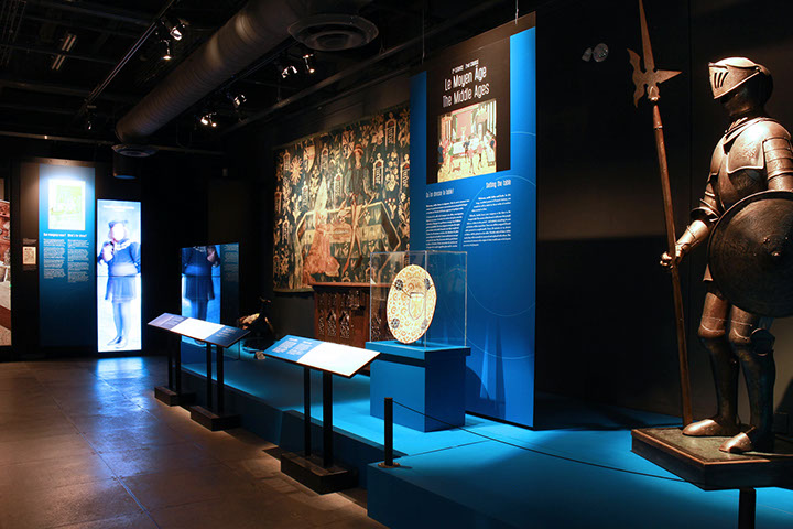 Design d'exposition : graphisme, mise en espace du mobilier, des audiovidéos et des artefacts, design du mobilier, suivi d'enregistrement et de tournage, suivi d'impression, de fabrication et d'installation