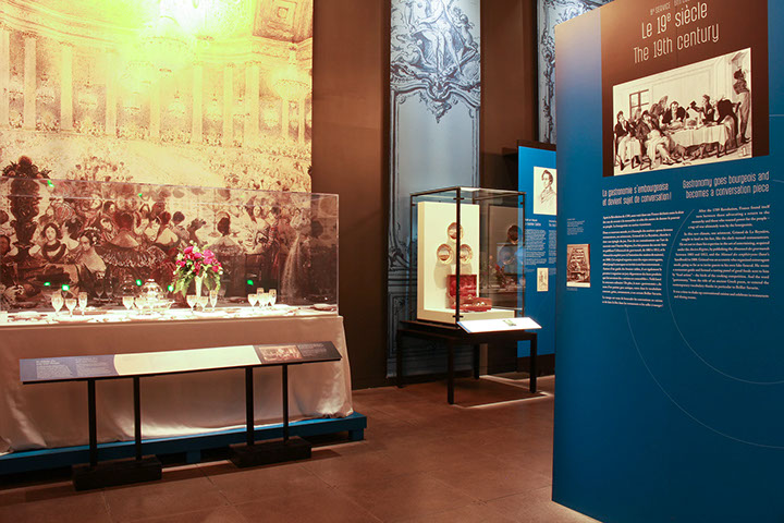« Dans le but de célébrer le repas gastronomique des Français et de faire vivre ce patrimoine culturel immatériel reconnu par l’UNESCO, Pointe-à-Callière consacre une exposition entière à ce sujet aussi inépuisable que délectable. L’exposition À table! Le repas français se raconte vous fera voyager à travers les siècles à la découverte des particularités du repas français, de ses produits, du savoir-faire de ses artisans, de ses spécialités, de ses traditions, mais aussi de ses tendances actuelles. Vous pourrez y faire la rencontre de différents personnages politiques, d'artistes ou de grands chefs qui ont façonné et même révolutionné l’art culinaire de ce pays, tout en admirant près d’un millier de pièces d’exception reliées aux arts de la table. »