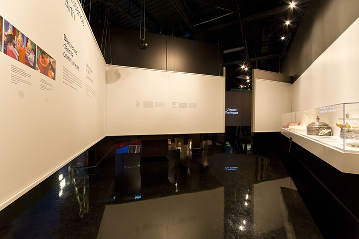 Design d'exposition : graphisme, mise en espace du mobilier, des audiovidéos et des artefacts, design du mobilier, suivi d'enregistrement et de tournage, suivi d'impression, de fabrication