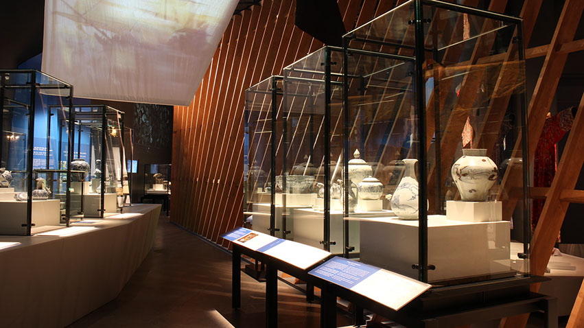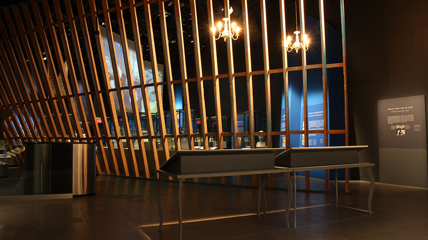 Design d'exposition : graphisme, mise en espace du mobilier, des audiovidéos et des artefacts, design du mobilier, suivi d'impression, de fabrication et d'installation