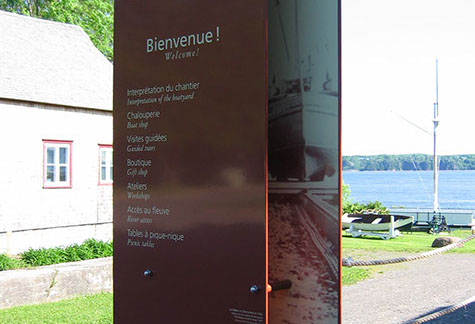 Réalisation de panneaux d’interprétation sur le site de l’ancien chantier maritime de Saint-Laurent à l’île d’Orléans. Les éléments relatent l’histoire de cet important site du patrimoine maritime québécois
