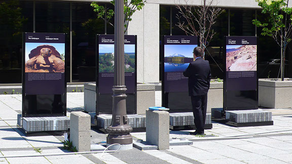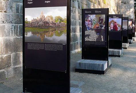 Stèles extérieures d'interprétation dans le cadre de la convention du patrimoine mondial de l'Unesco. Au nombre de 13, ces éléments présentaient 26 monuments du patrimoine mondial